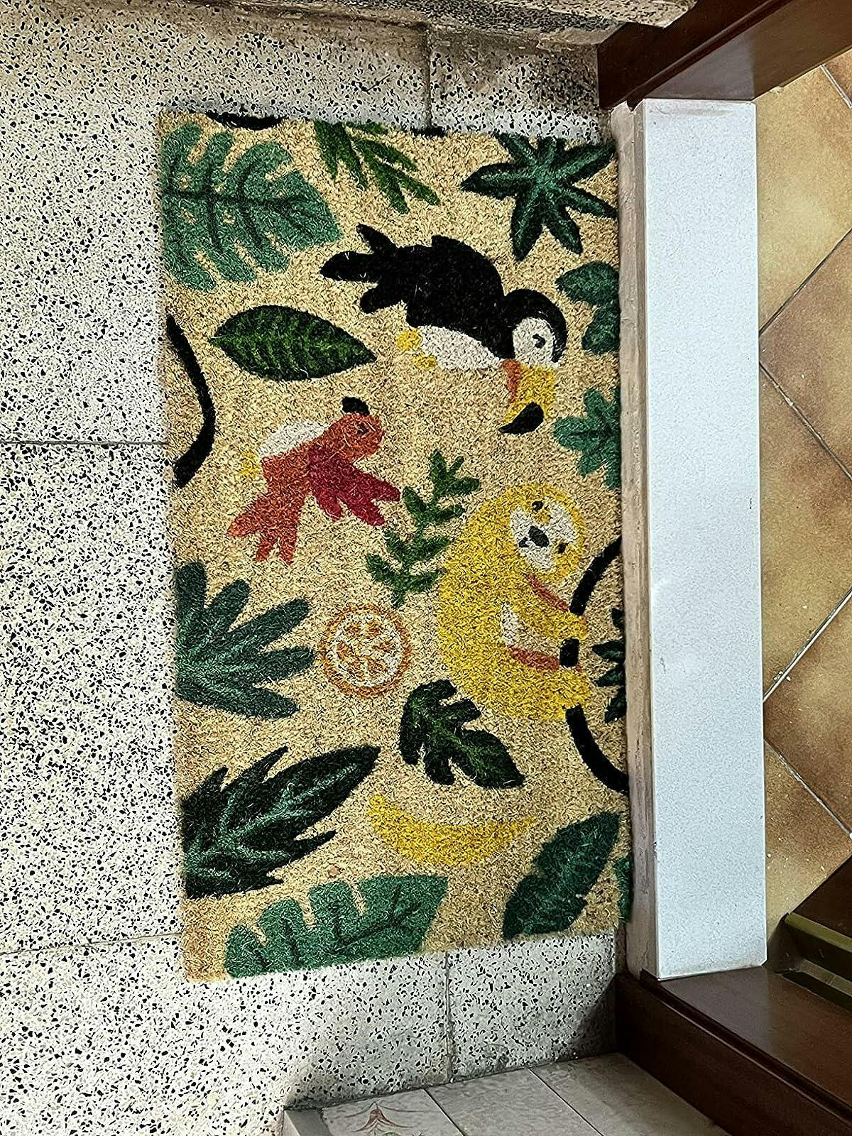 ¡Embárcate en una aventura salvaje desde la entrada de tu hogar con nuestro felpudo de coco natural y base de PVC, que presenta un emocionante diseño de animales en la selva! 🦁🌴 Este felpudo no solo te da la bienvenida, es como un portal que te transporta a un mundo de exuberancia y vida silvestre.